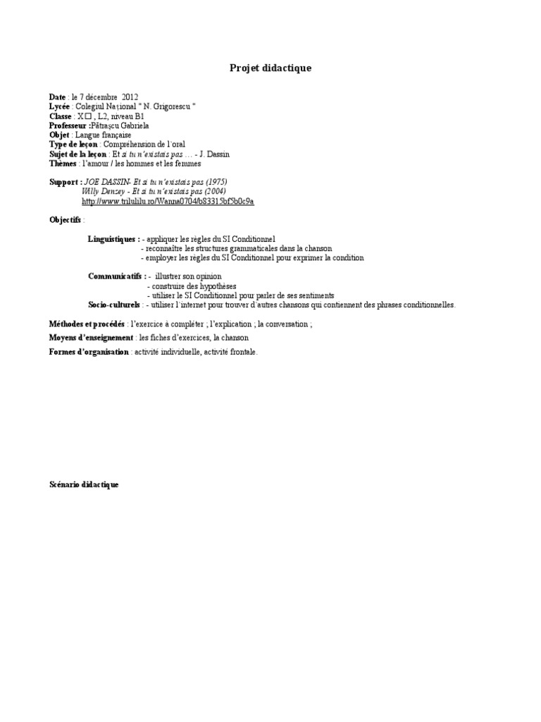 Projet Didactique Et Si Tu Nexistais Pas Amour Langues