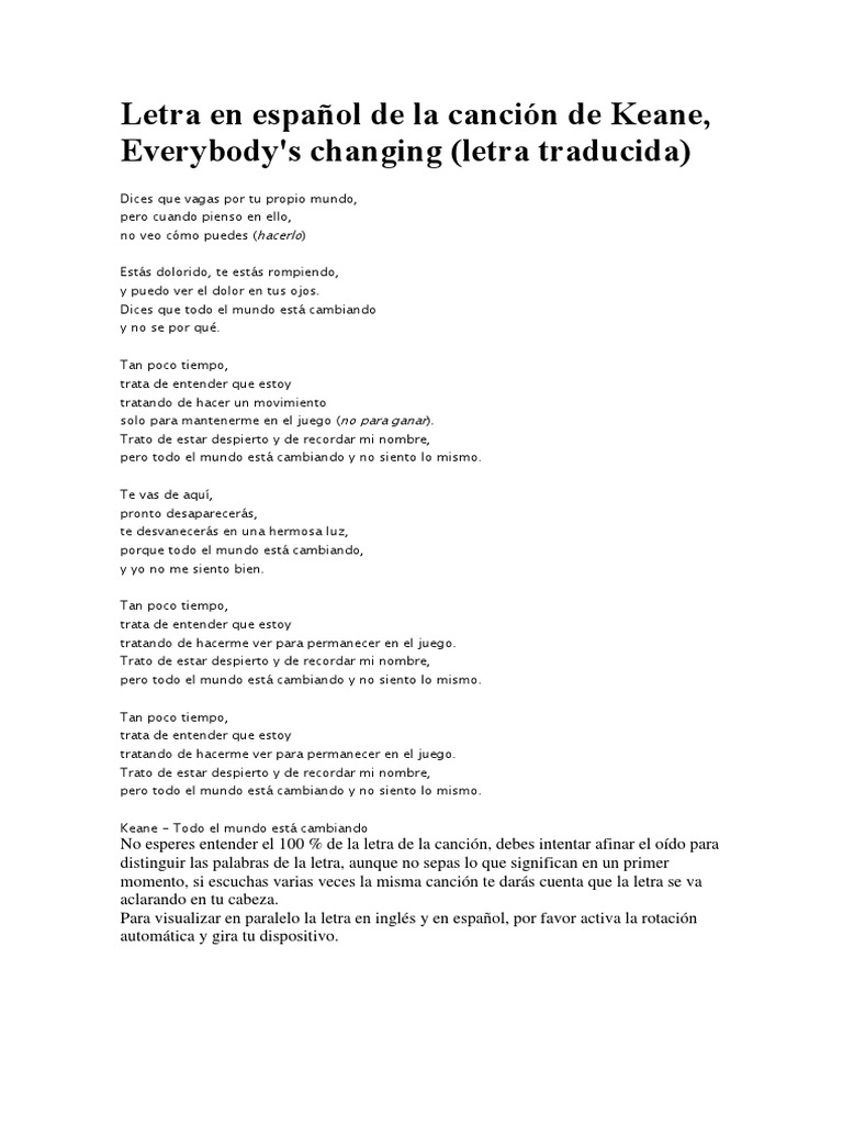 Songs Letra En Espanol De La Cancion De Keane Everybody S Changing Wattpad