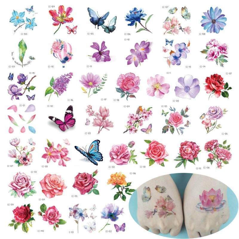 Flor De Tatuajes Temporales Para El Tatuaje Mujer Nino Mano Rose De La Mariposa Pegatina Arte De La Moda Del Brazo Del Cuerpo A Prueba De Agua Falso Papel De Tatoo Por