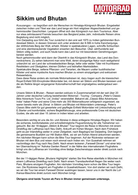 Sikkim Und Bhutan Motorrad Online